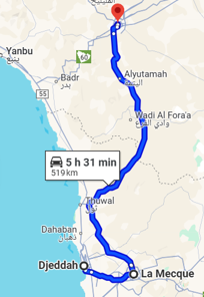Le vol aller arrive à Médine et le vol retour part de Djeddah.