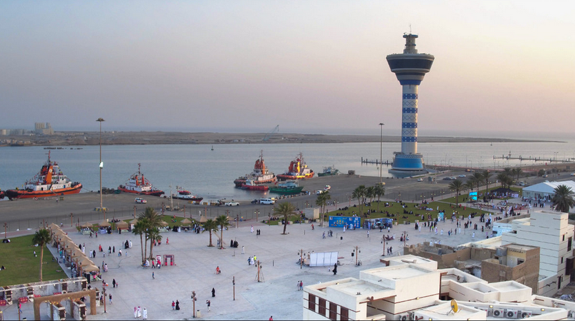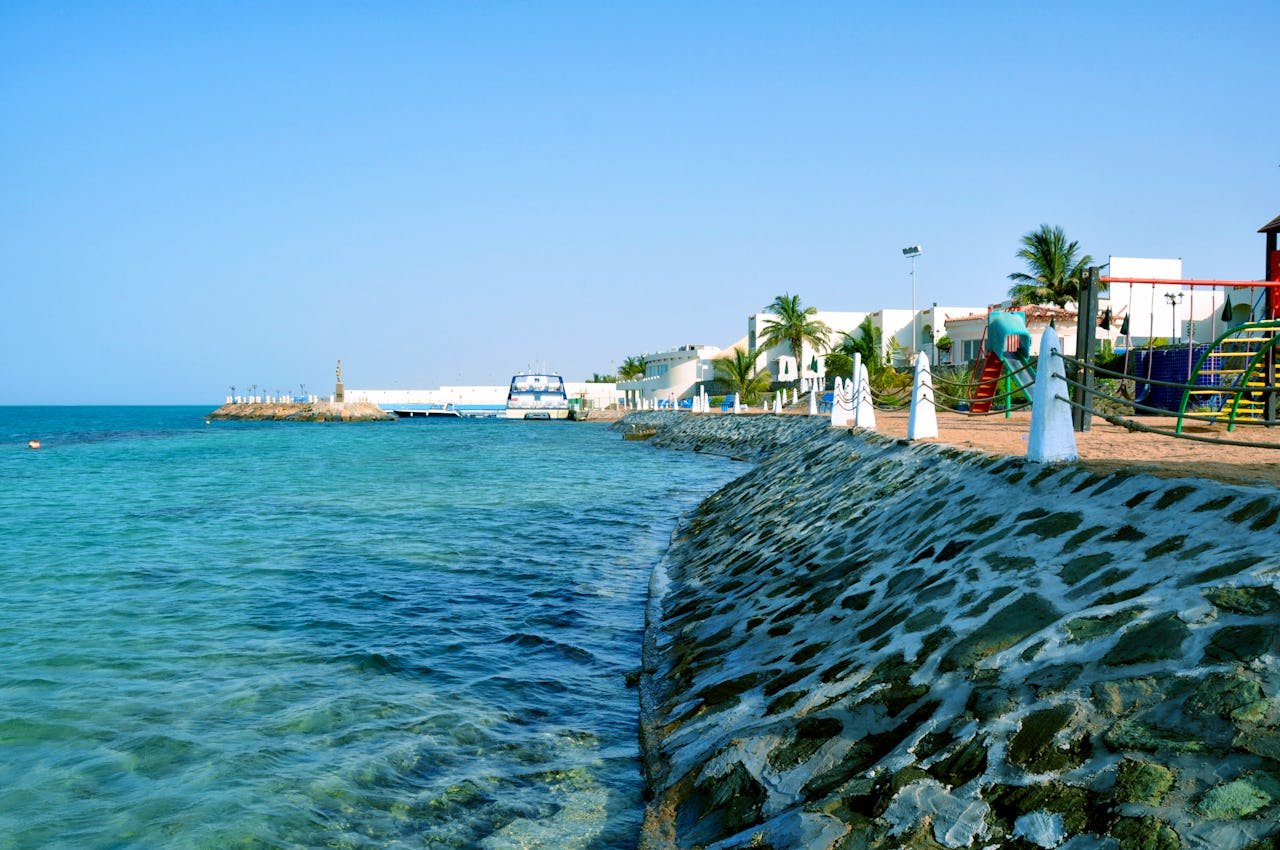 Promenade paisible et repas en bord de mer sur la plage de Yanbu Al-Bahr.
